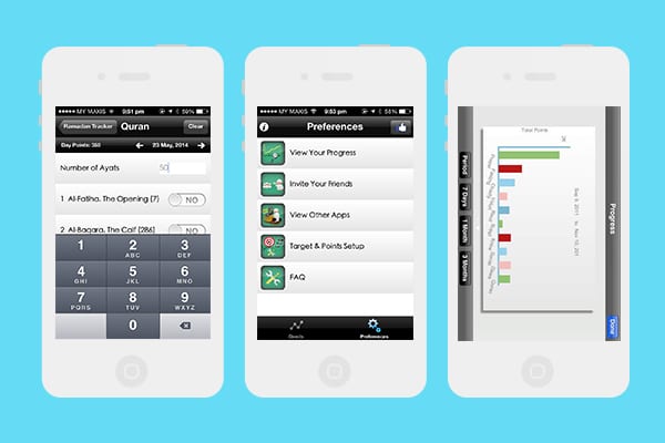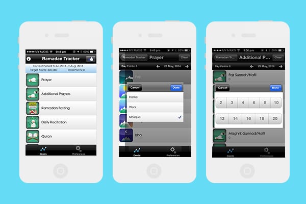 This free application is the Ramadan-specific variant of iSawab, the generic tracking-app. For those who love the concept of accumulating points, Ramadan Tracker allows you to set designated points for actions and set a target of points to achieve per day.