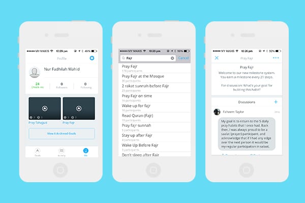 Adding a new habit is a tad different in Lift because instead of pursuing the habit alone, you get to join communities of people who are trying to build the same habits. By searching the term “Fajr” for instance, Lift shows me a list of communities who are pursuing habits related to “Fajr”, from people who are trying to “wake up before Fajr” to those who are trying to “stay up after Fajr.” What is great about communities is that you get to exchange motivations and advice with those who are facing the same struggles as you are!