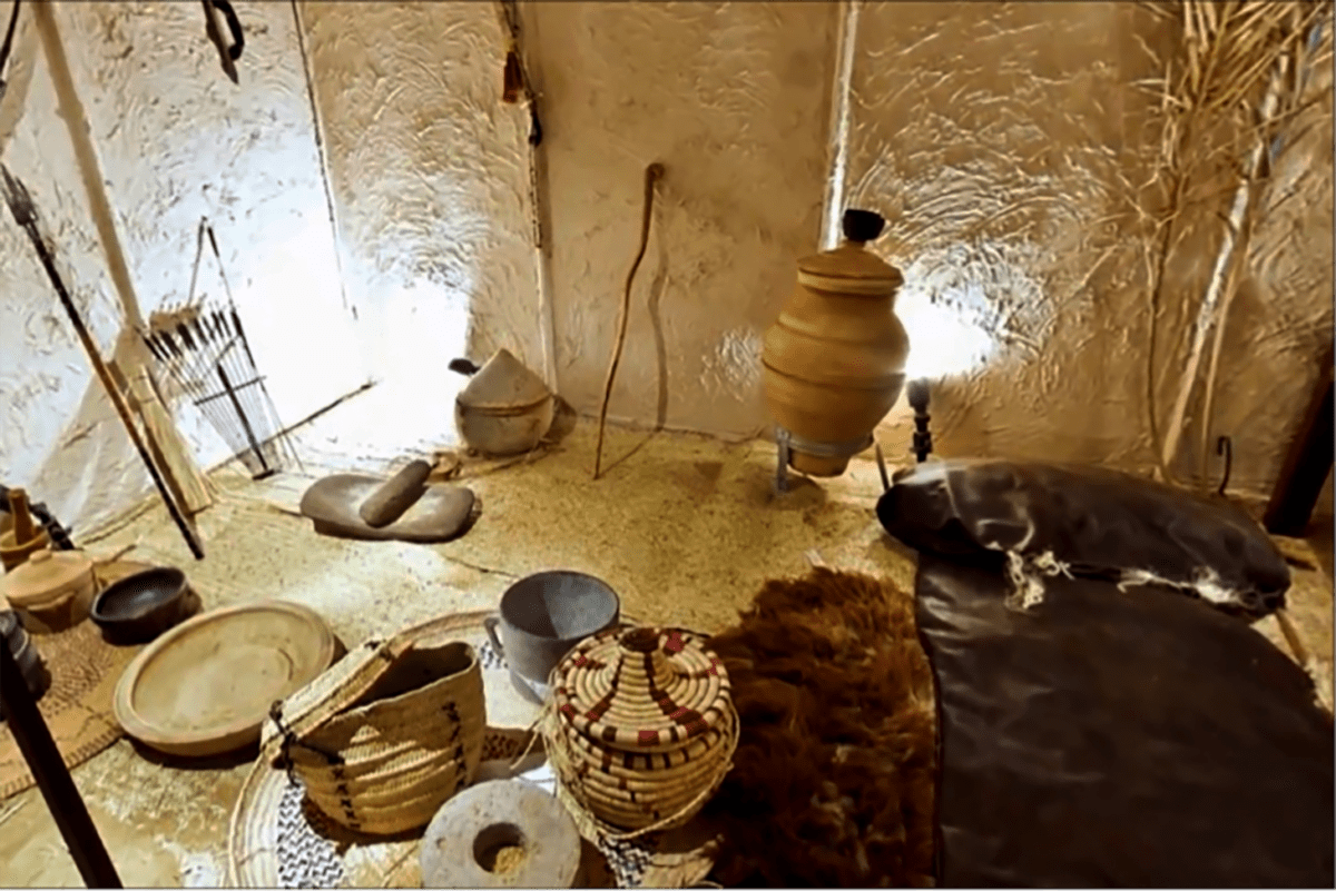 When he enters his home, he prepares himself for sleep, hangs his clothes and comes into bed with his wife, sharing a blanket and a pillow together. His bed was made of animal skin stuffed with fiber, and his pillow was made of similar material – needless to say, these left some marks on his skin as he slept but that didn’t bother him. He would place his siwak close to his head so that he’d use it as soon as he wakes up.