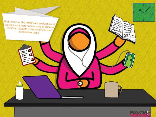 - Dhikr relieves the mind from anxieties and worries; as a result one is able to channel him/her towards more beneficial and productive tasks.