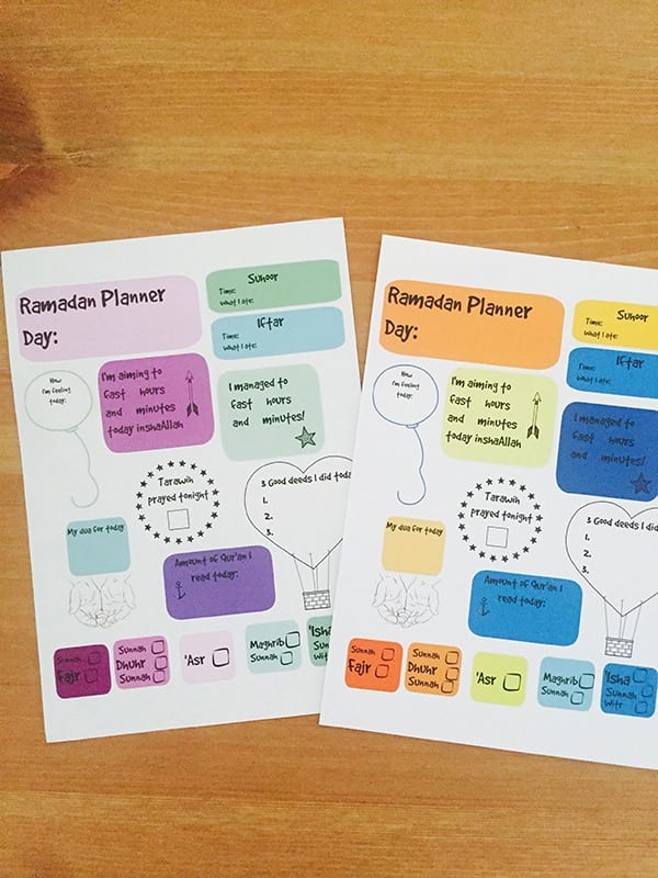 On the other hand, teenagers can benefit from a Ramadan diary: buy them a funky notebook or get a plain one and allow them to decorate it themselves. Tell them it’s for them to record not just their goals at the start, but their feelings, thoughts and prayers to Allah ﷻ as the month continues. I do check them to see that they are writing in them regularly, but I never read specifics (I generally only flick through the pages), as privacy is important at this age.