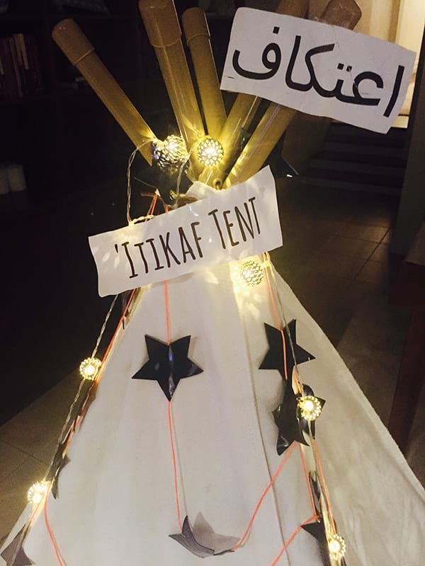 I wanted to introduce my children to the idea of i’tikaf in Ramadan while they were still small in a fun and special way. They were too young to do a proper i’tikaf in the masjid, so I purchased a tent and decorated it with fairy lights and stars on strings and left it in the living room for the whole month. I told them it was their own special place (no grown-ups allowed!) for thinking and dreaming and praying in Ramadan.