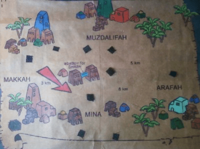 Begin by teaching your children the meaning behind Hajj. Print out this Hajj map and
