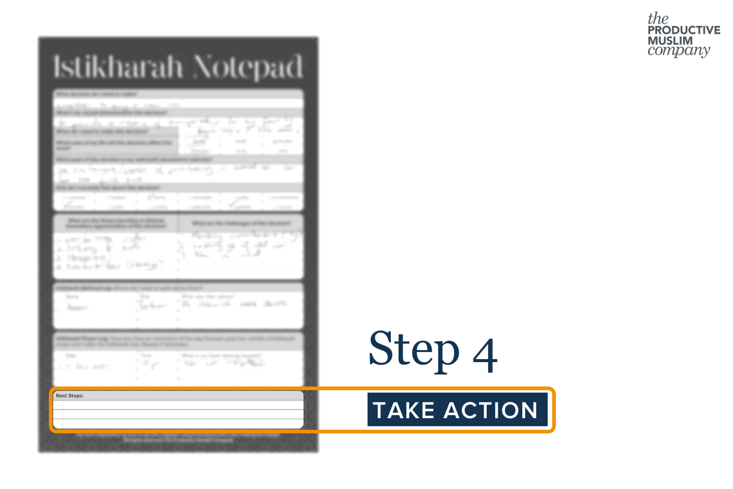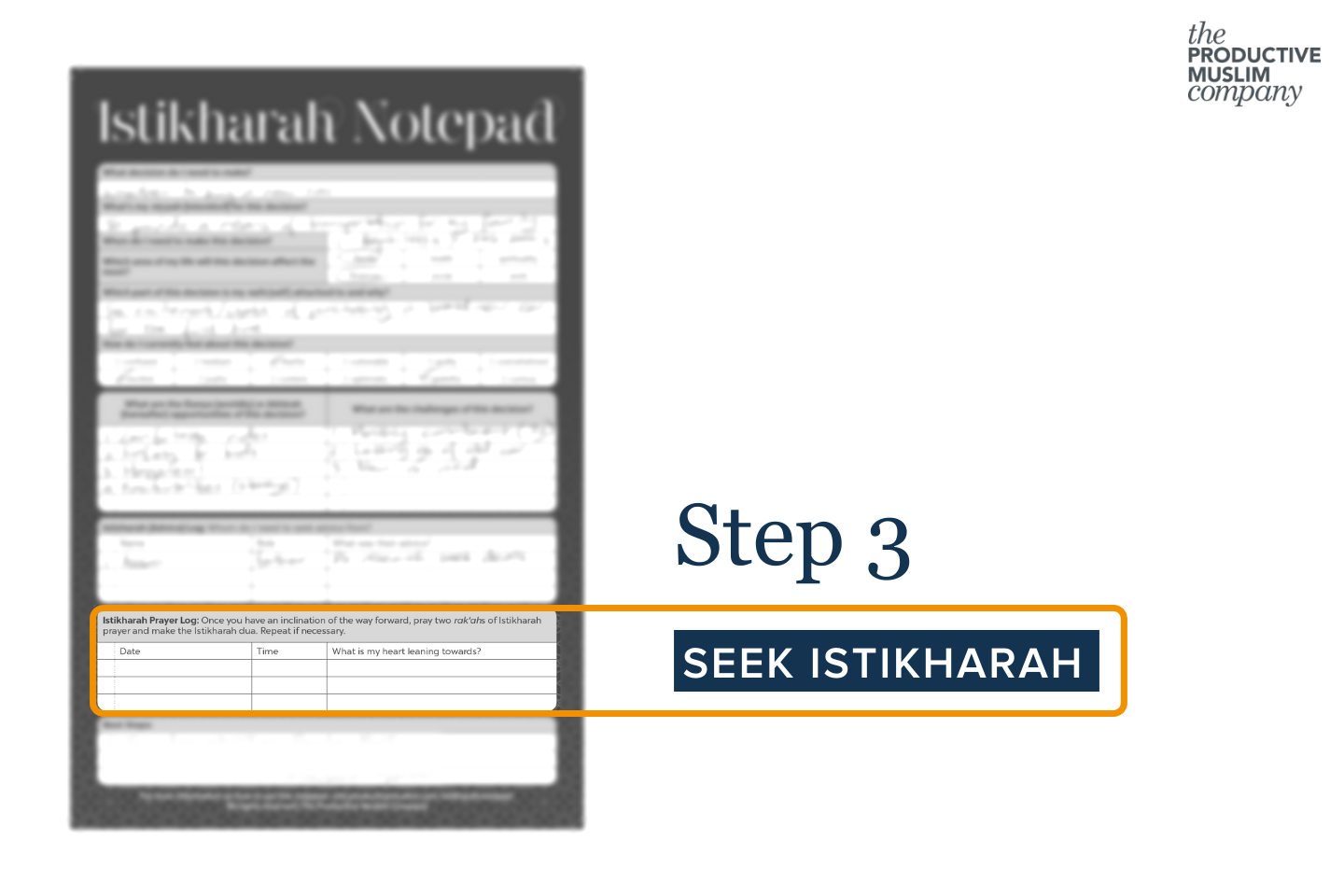 The Istikharah Notepad is a practical tool developed by The Productive Muslim Company to help you think through decisions with Barakah.