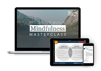 The ProductiveMuslim Company is pleased to introduce the Mindfulness Masterclass: A six-week online masterclass that connects Islamic tradition with mindfulness science to help you deal with negativity, uncertainty, and the emotional rollercoasters of life. The class starts Tuesday, 11th Sha’ban 1443H (15 Mar 2022) at 6:00 pm Central Time. Check out the detailed program and register today.