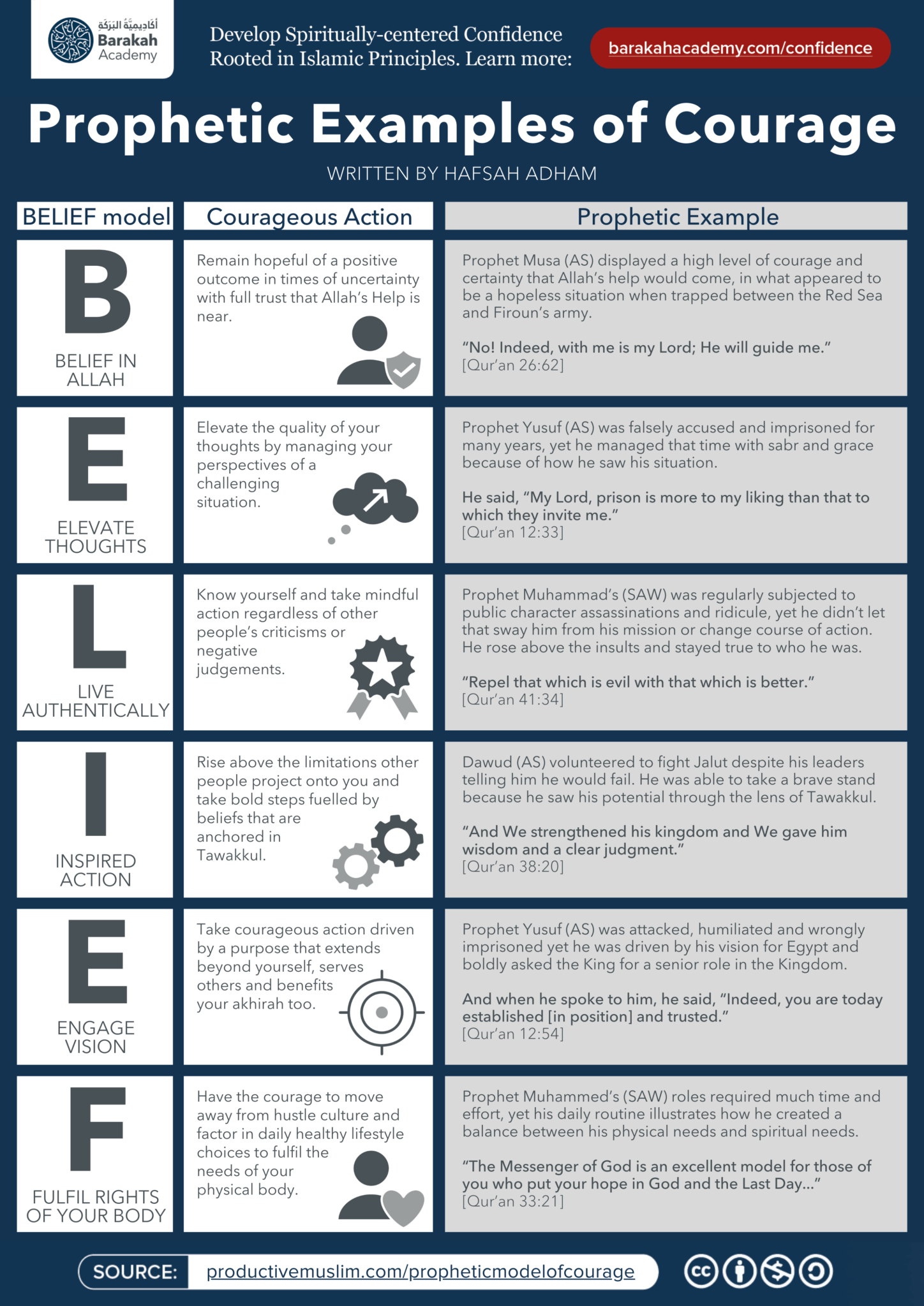 Here are few Prophetic examples which illustrate courage using the Belief Model: