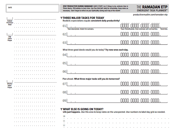 I’m excited to share with you a brand new tool to help you become productive during Ramadan. It’s called the Ramadan Emergent Task Planner (ETP). This is a unique Ramadan time management tool designed by our friend and productivity design guru, David Seah from DavidSeah.com.