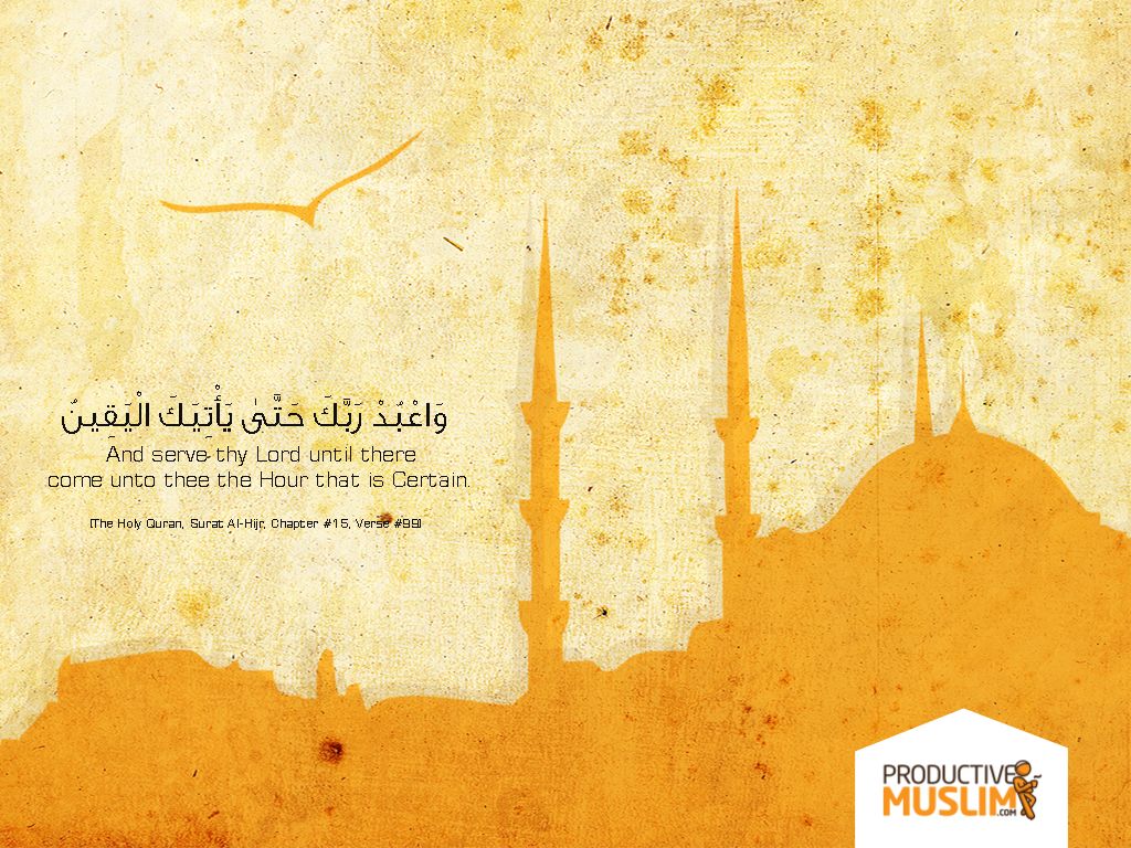 Inspired by the verse 15:99 of the Quran, this wallpaper would serve as a daily inspiration to take be productive TODAY!.Best of all, it’s for FREE! Download and share it with your family and friends!Sizes:800×6004000×25001280×10241024×768