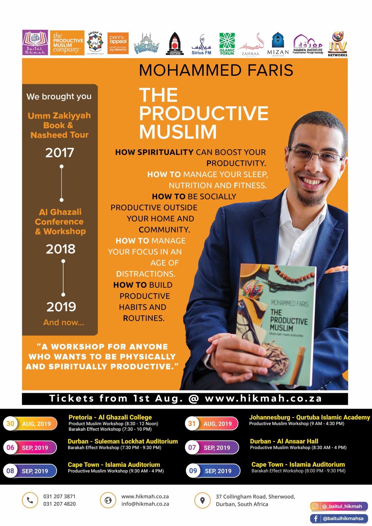 Register for the event here: https://hikmah.co.za/productive-muslim-workshop-book-tour-by-mohammed-faris/