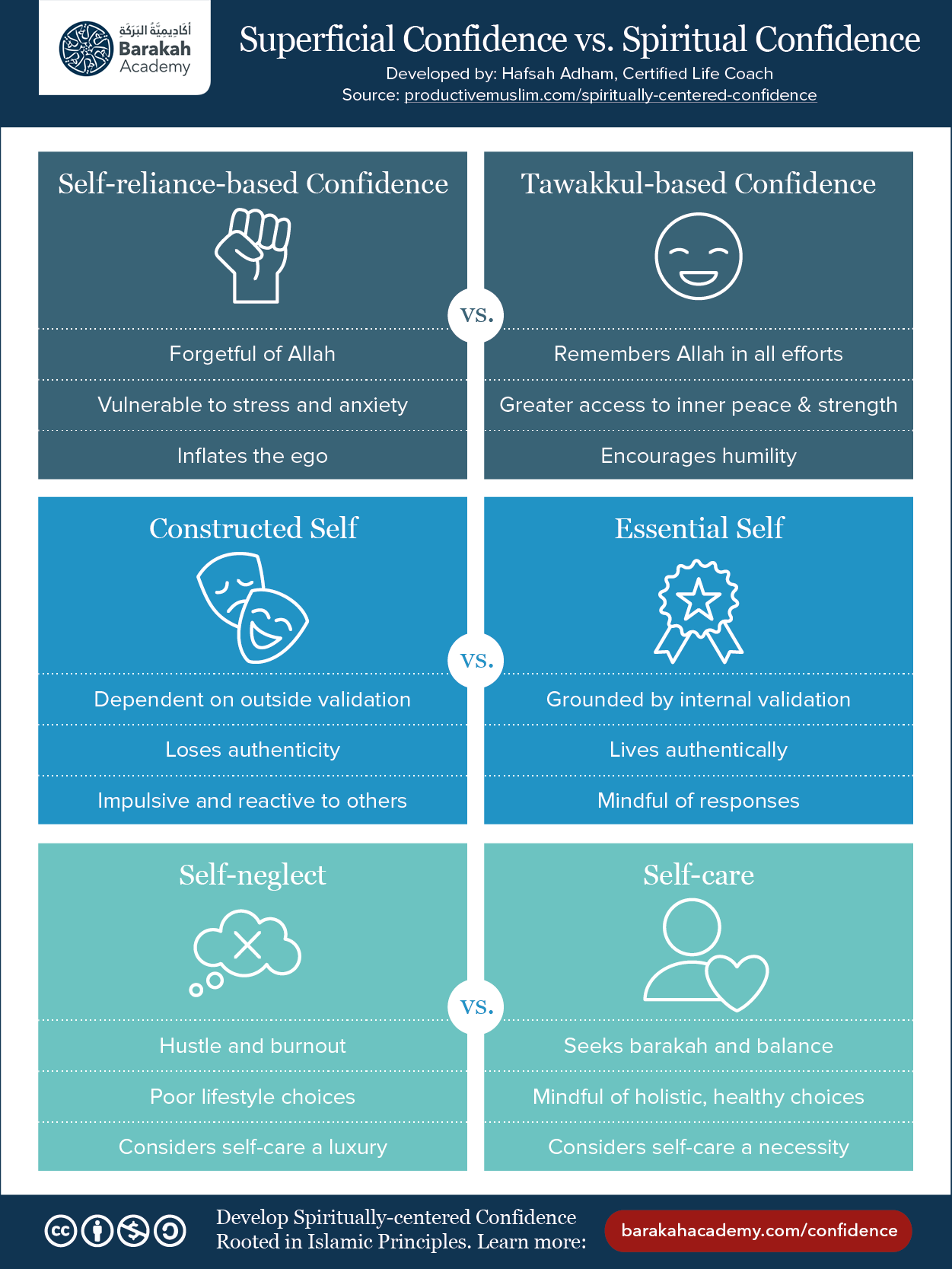 After years of spiritual and personal development training, I finally felt a sense of authenticity, acceptance, and connection to my true self. It was through this process that I realized a fundamental truth; the only way to experience unwavering self-confidence is to ground your identity, efforts, and focus on your faith in Allah.