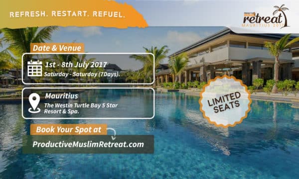 We want to replicate last year’s experience on another 5-star resort in the beautiful island of Mauritius this July. We are expecting a lot more participants from all over the world and we’re inviting you to join us as well. You can find details about the retreat at productivemuslimretreat.com and apply by clicking the “Book Now To Reserve Your Spot” button on the website or by clicking here.